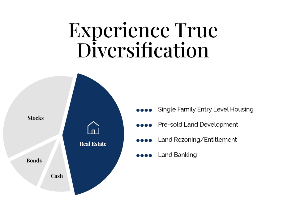 Real estate is critical to a strong investment portfolio. Thanks to its low correlation to stocks and bonds, entry level housing real estate provides reduced exposure to market volatility and enhanced returns.